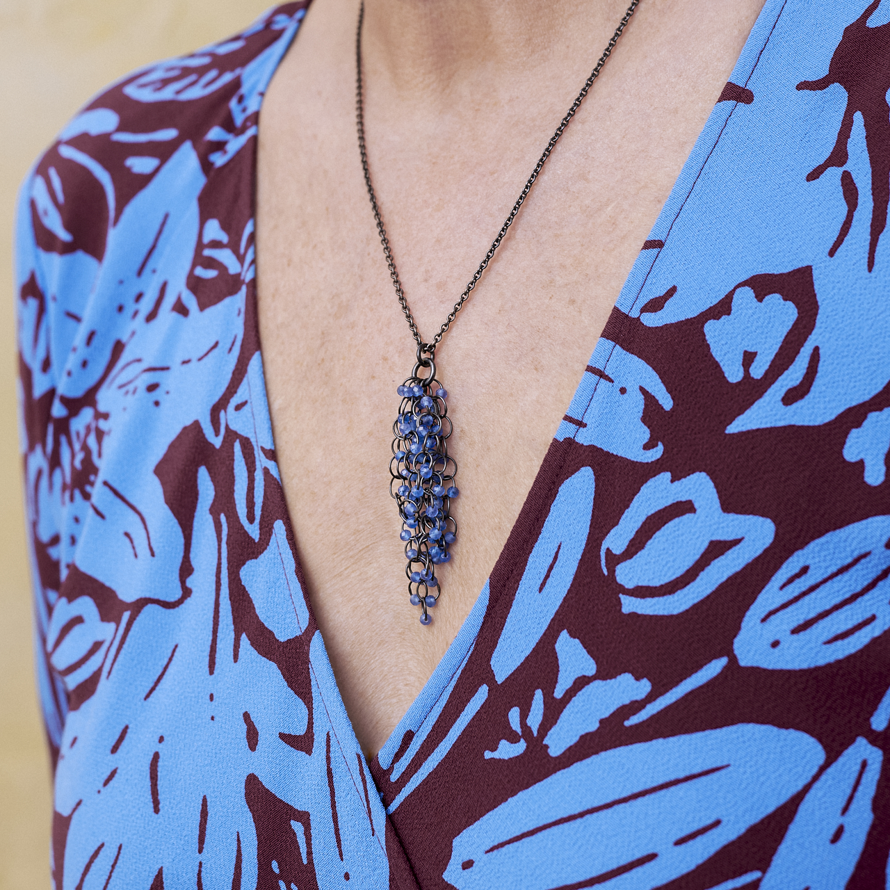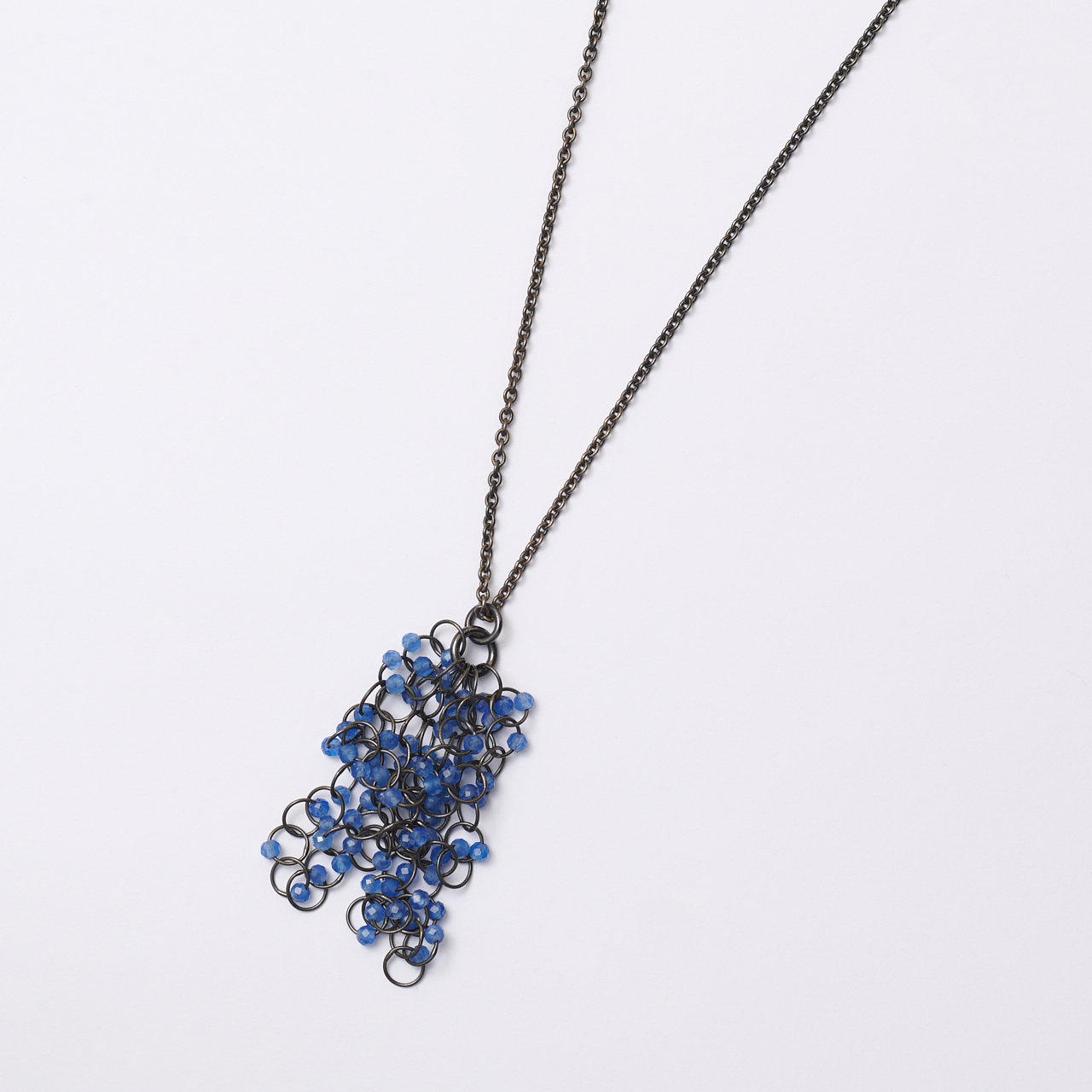 Kette mit einem Anhänger aus Ösen und Achatkugeln in 925/- Silber geschwärzt