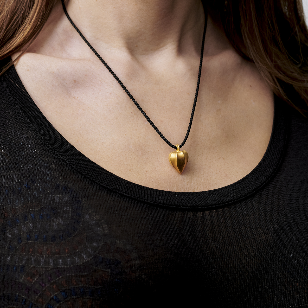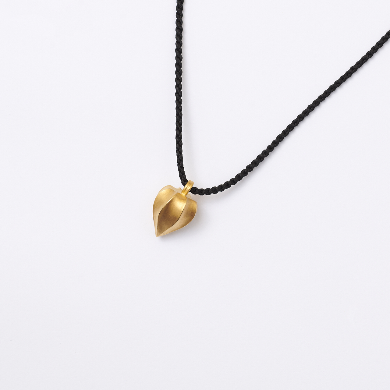 Anhänger Lampion aus 925/- Silber feingoldplattiert an einem schwarzen Seidenband mit Bajonettverschluss 925/- Silber vergoldet