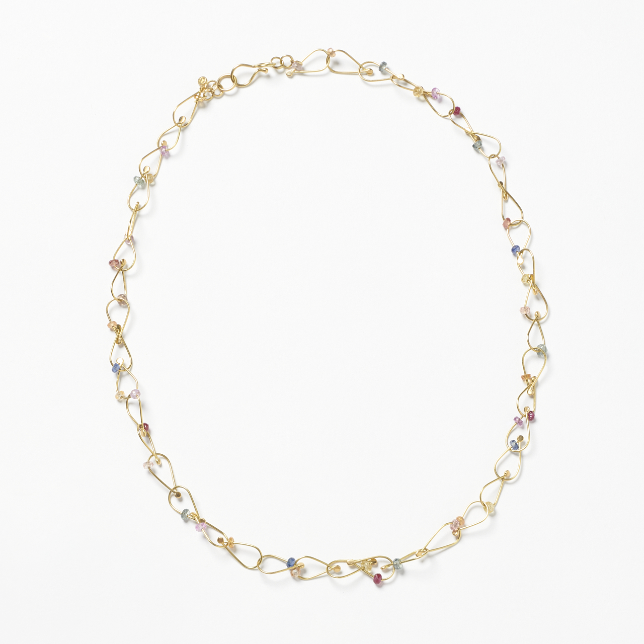 Kette aus tropfenförmigen Gliedern mit bunten Saphiren in 750/- Gelbgold *1158