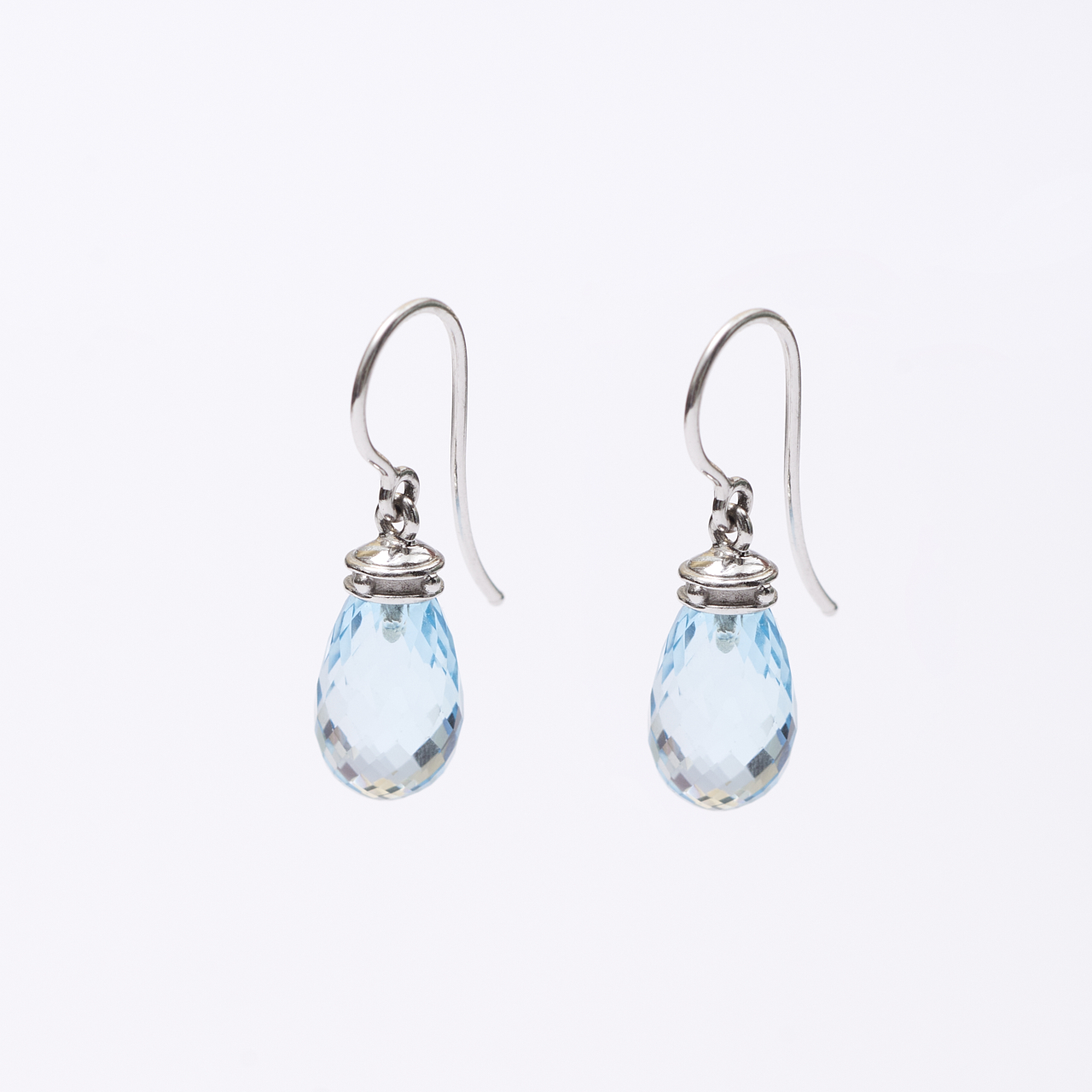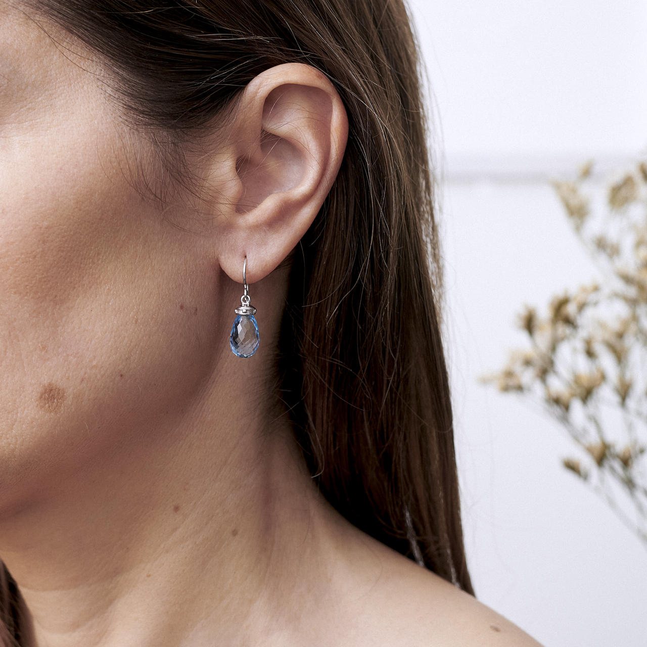 Ohrhänger Krönchen in 750/- Weißgold mit blauen facettierten Topaspampeln