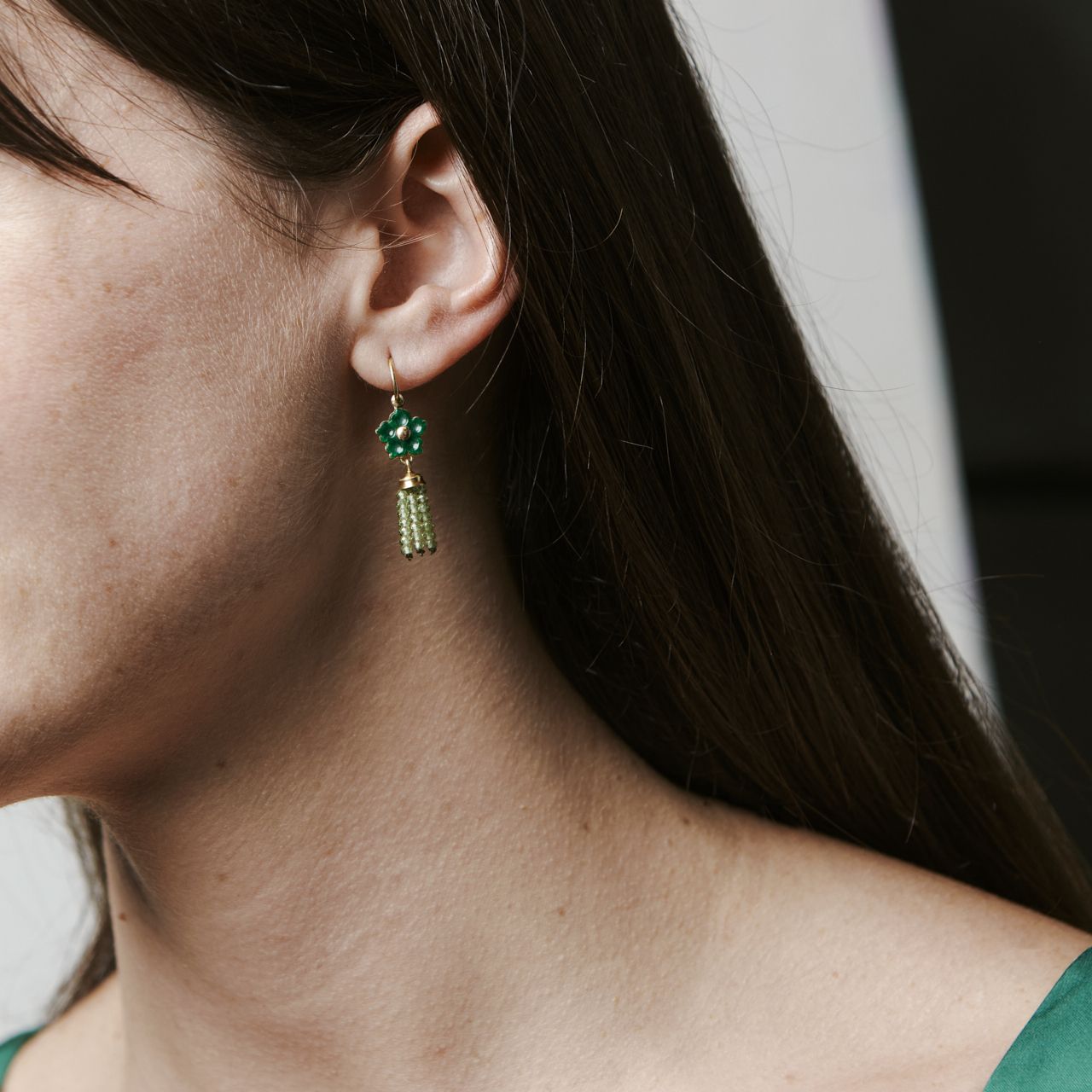 Ohrhänger Jadeblume und Peridotperlen