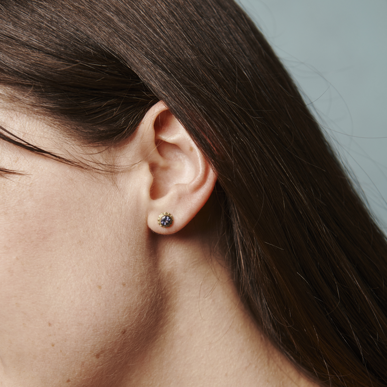 Ohrstecker Krönchen mit Iolith gefasst in 750/- Gelbgold