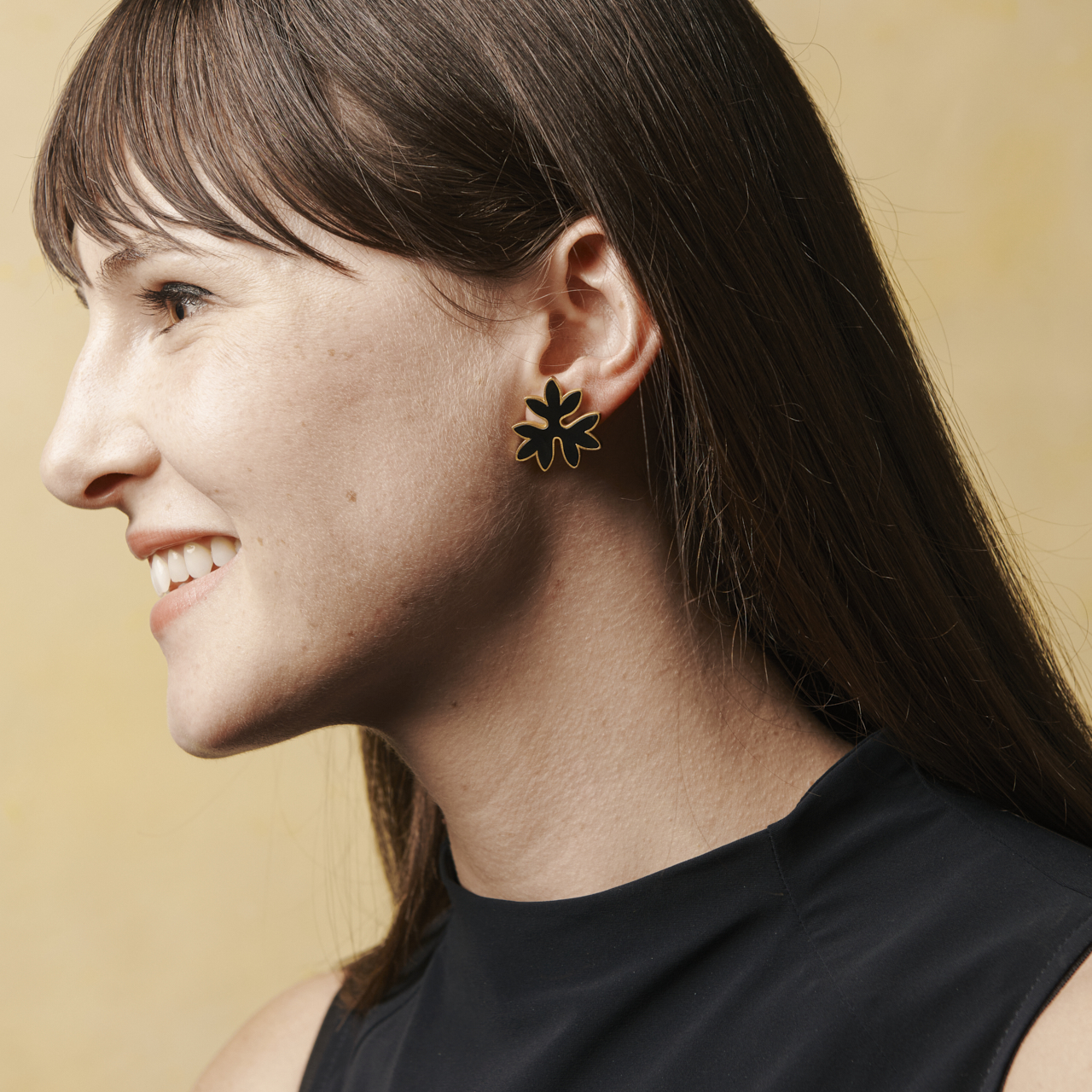 Ohrstecker Blättermotiv in 900/- Gold mit mattierten Onyx