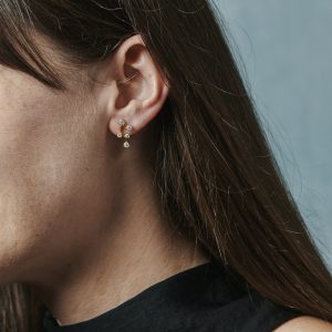 Ovale Ohrhänger mit Blumenzweigen in Gelbgold