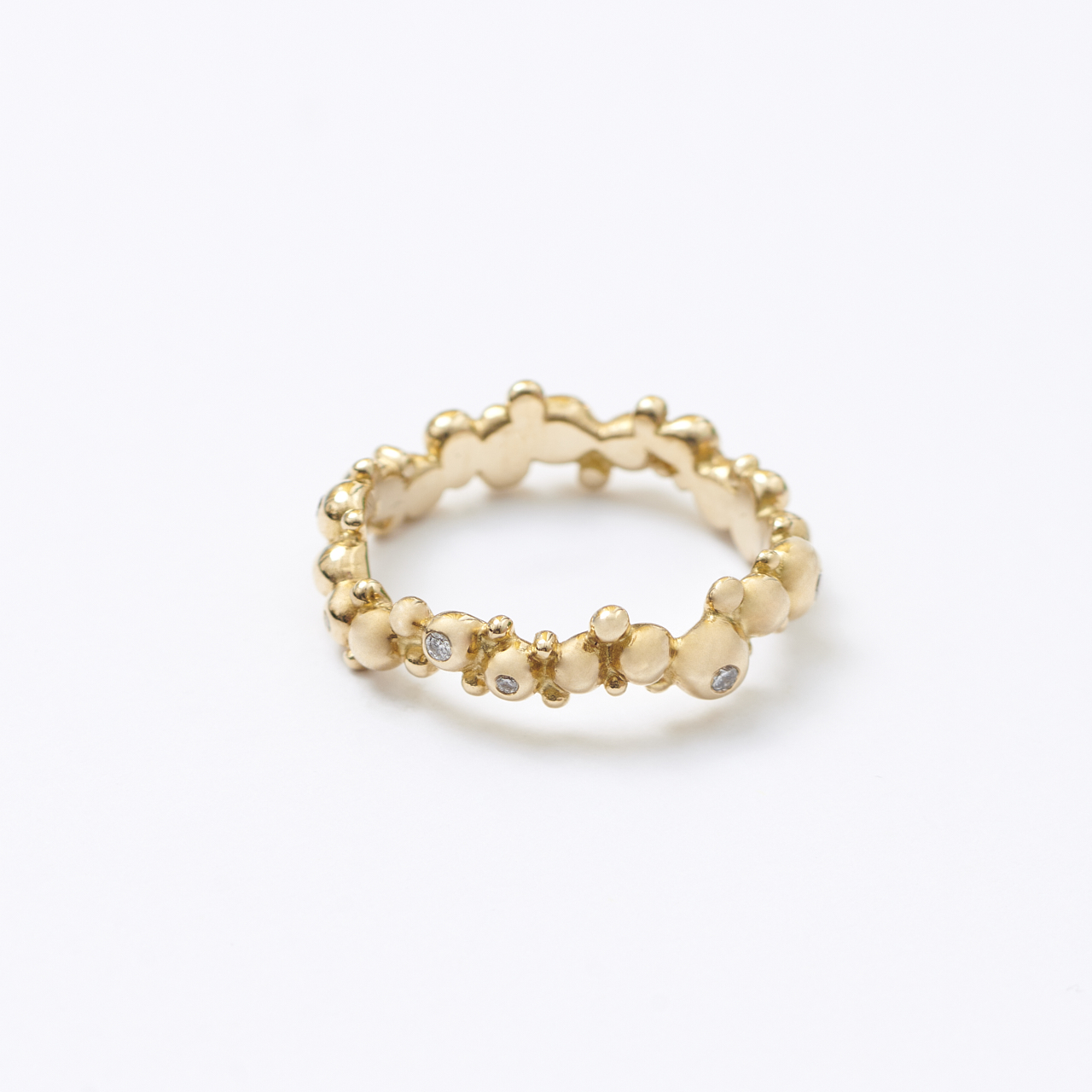 Kügelchenring aus 750/- Gelbgold mit 10 Brillanten Tw-vs 0,094ct Gesamt