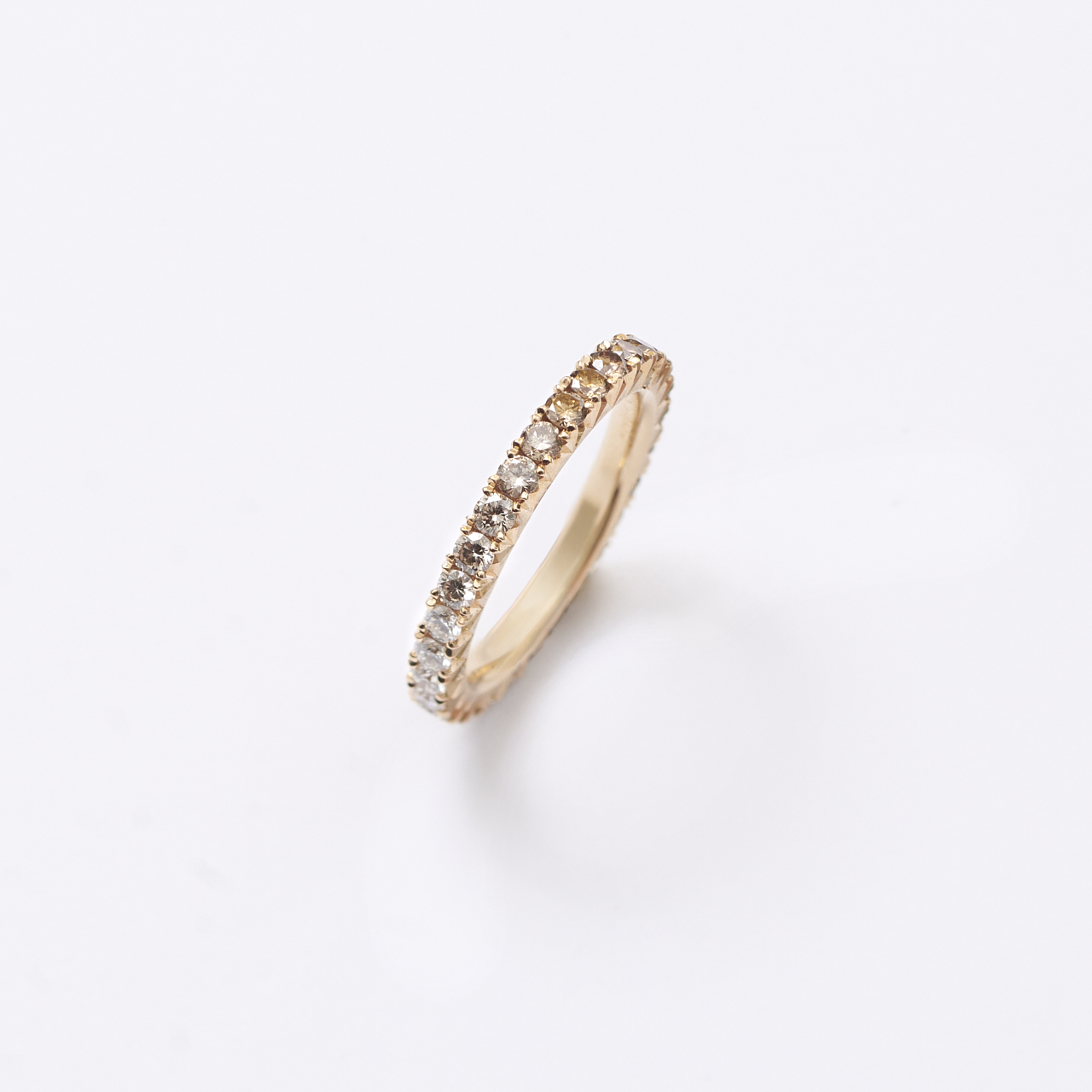 Memoire Ring Fishtail in 750/- Roségold mit 40 Brillanten, River/lupenrein bis Cognac natur in Farbverlauf