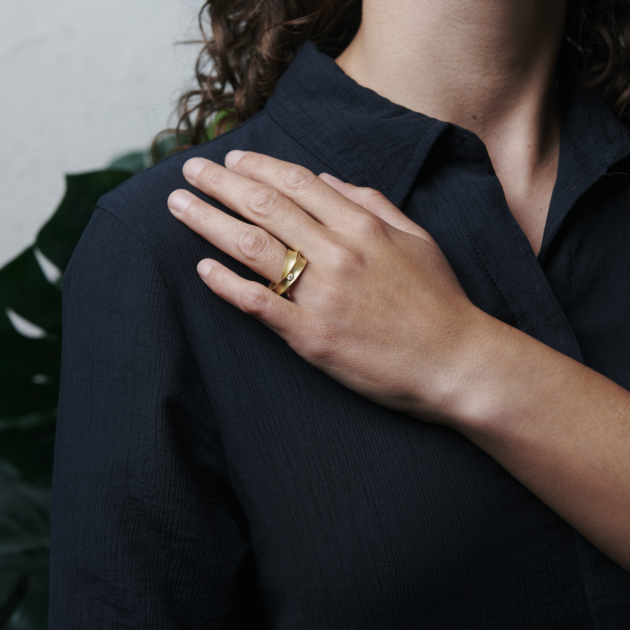 Ring Curved Shape zweifach in 750/- Gelbgold mit einem von 0,06ct Tw/vs